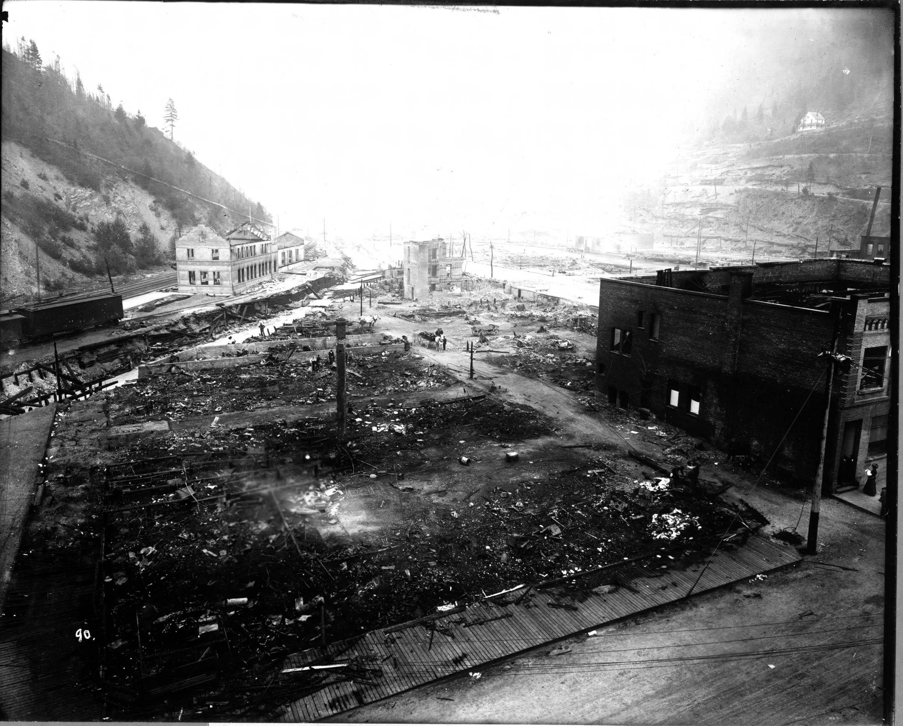 Seven small towns in Idaho and Montana were completely destroyed by the fire, and one third of Wallace, Idaho burned to the ground. The Big Burn Collection, a digital exhibition of materials related to the Big Burn fires of 1910, contains many startling images of the destruction.
