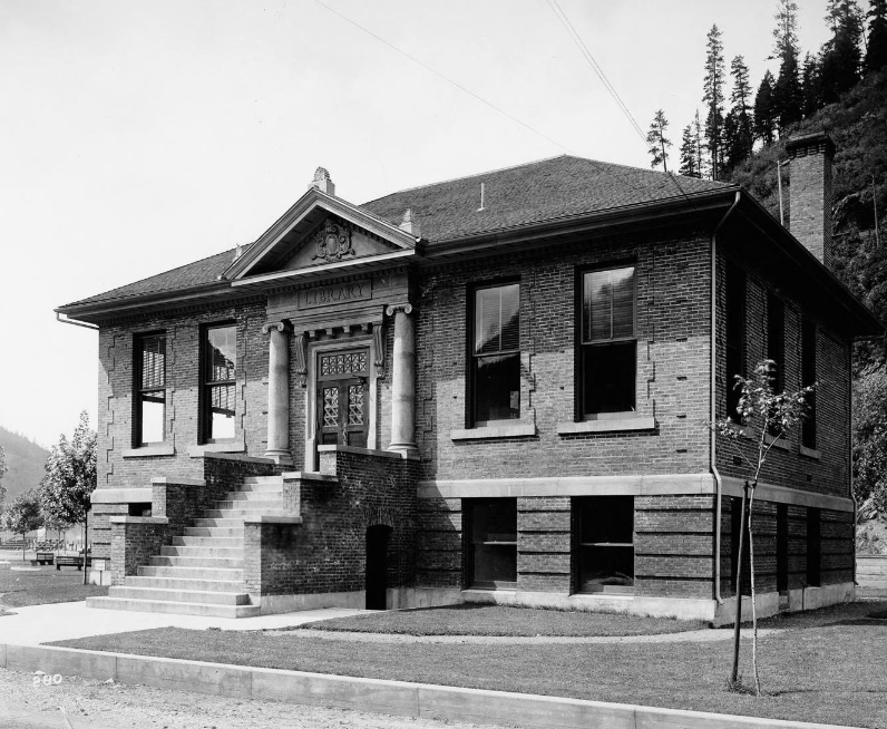 2016-02-27 libraries; gif; gif warning; idaho; wallace idaho; carnegie; carnegie libraries; library The Wallace Public Library, 1912 From the Barnard Stockbridge Photograph Collection